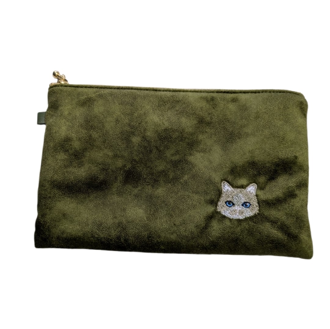 #猫 #刺繍 #ポーチ #フラットポーチ