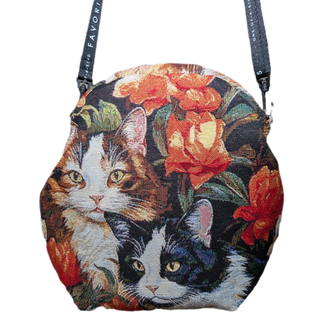 ネコ柄 / ゴブラン織りバッグ / 口金ショルダー / ハンドメイドバッグ / ネコ好きさんと繋がりたい / プレゼント / / 斜めがけバッグ / 大容量ショルダー