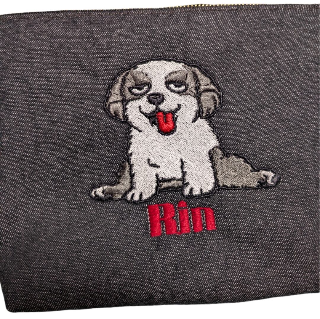 【名入れ無料】だら~んDOG 犬種セレクト刺繍ポーチ|デニム×ナイロン|3ポケット|マチ5
