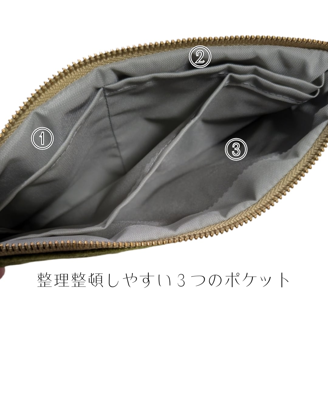 内側はナイロンオックスで汚れに強く、仕分けしやすい内ポケット3つ付き。
