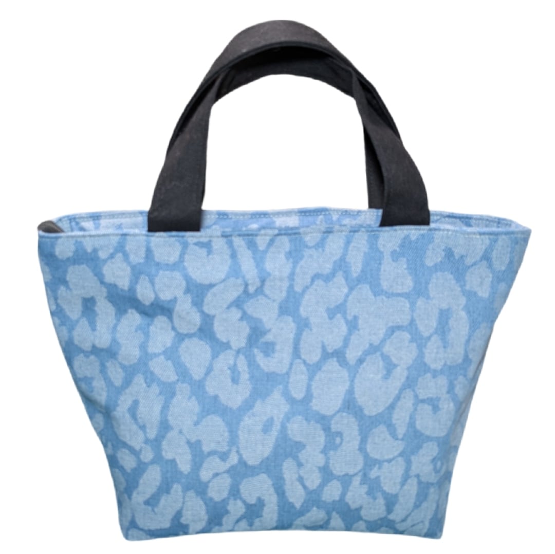 【完全オーダー】うちの子刺繍 保冷・保温バッグ|自立型|デニムヒョウ柄×高島帆布黒