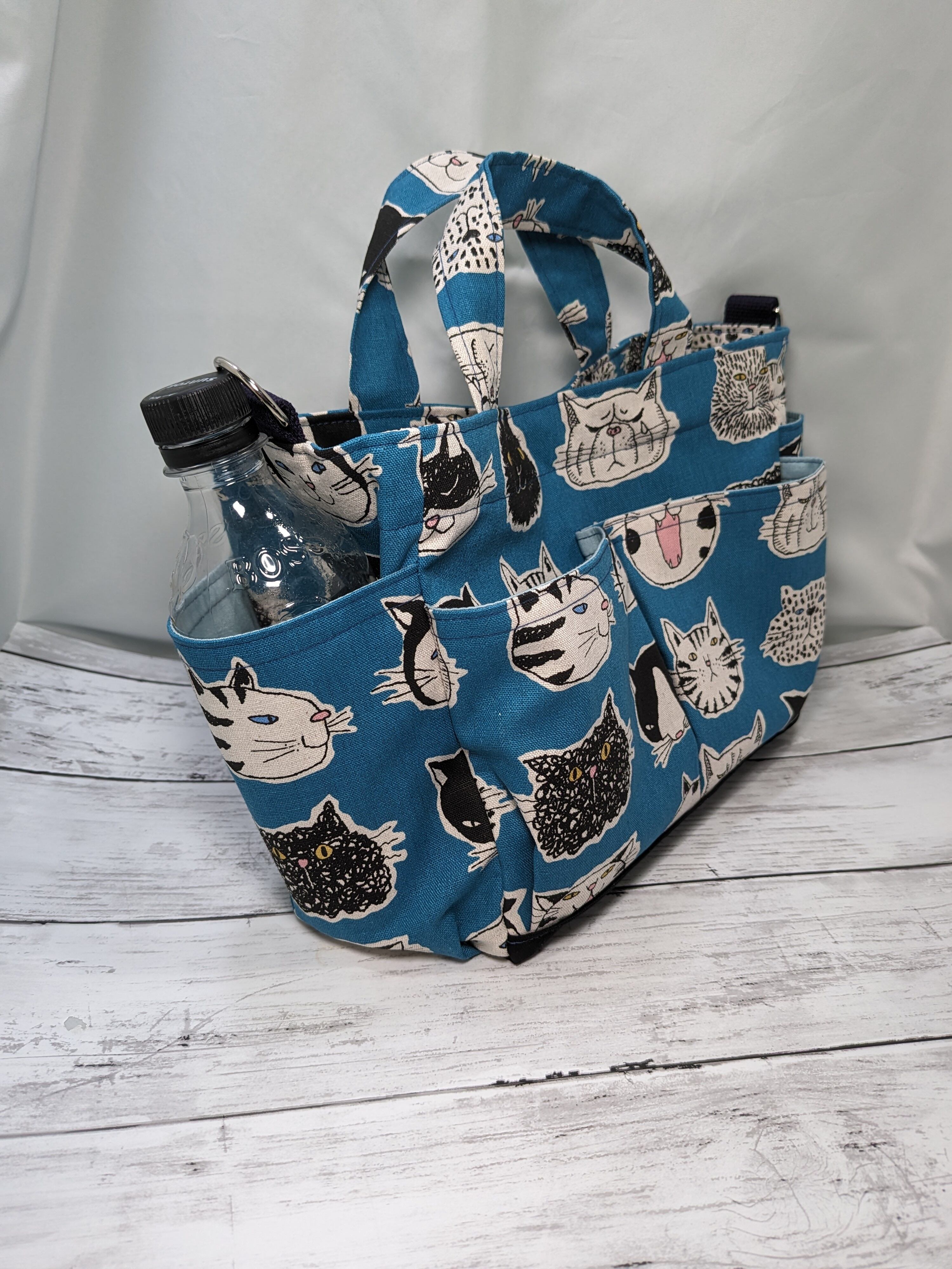 癖になる猫柄ポケットいっぱいで整理しやすいトートバック ショルダー紐付き