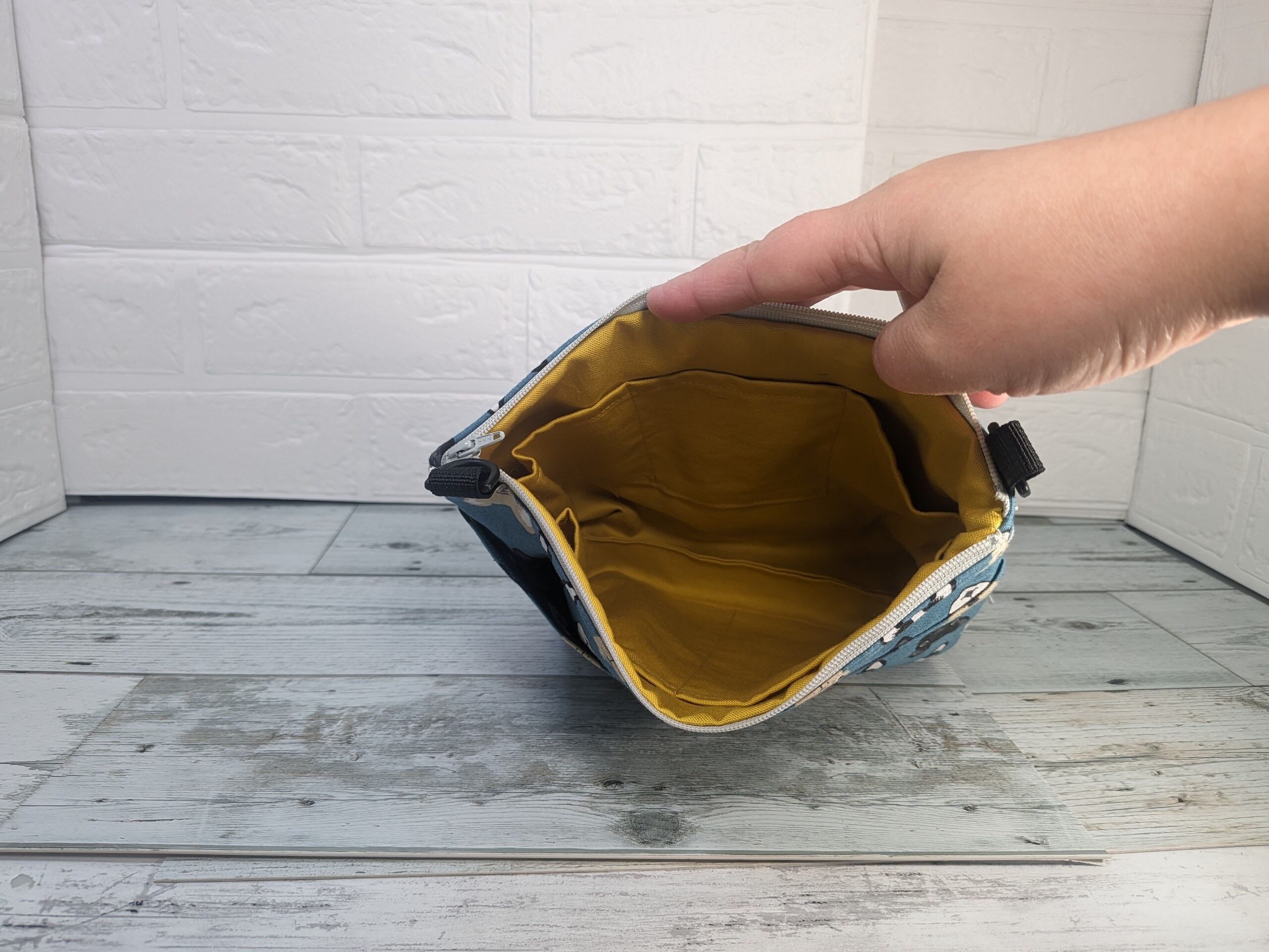 中央は約6センチのマチがあり、浅めのポケット3つ、深めのポケットが2つあるので整理整頓がしやすくなっています。