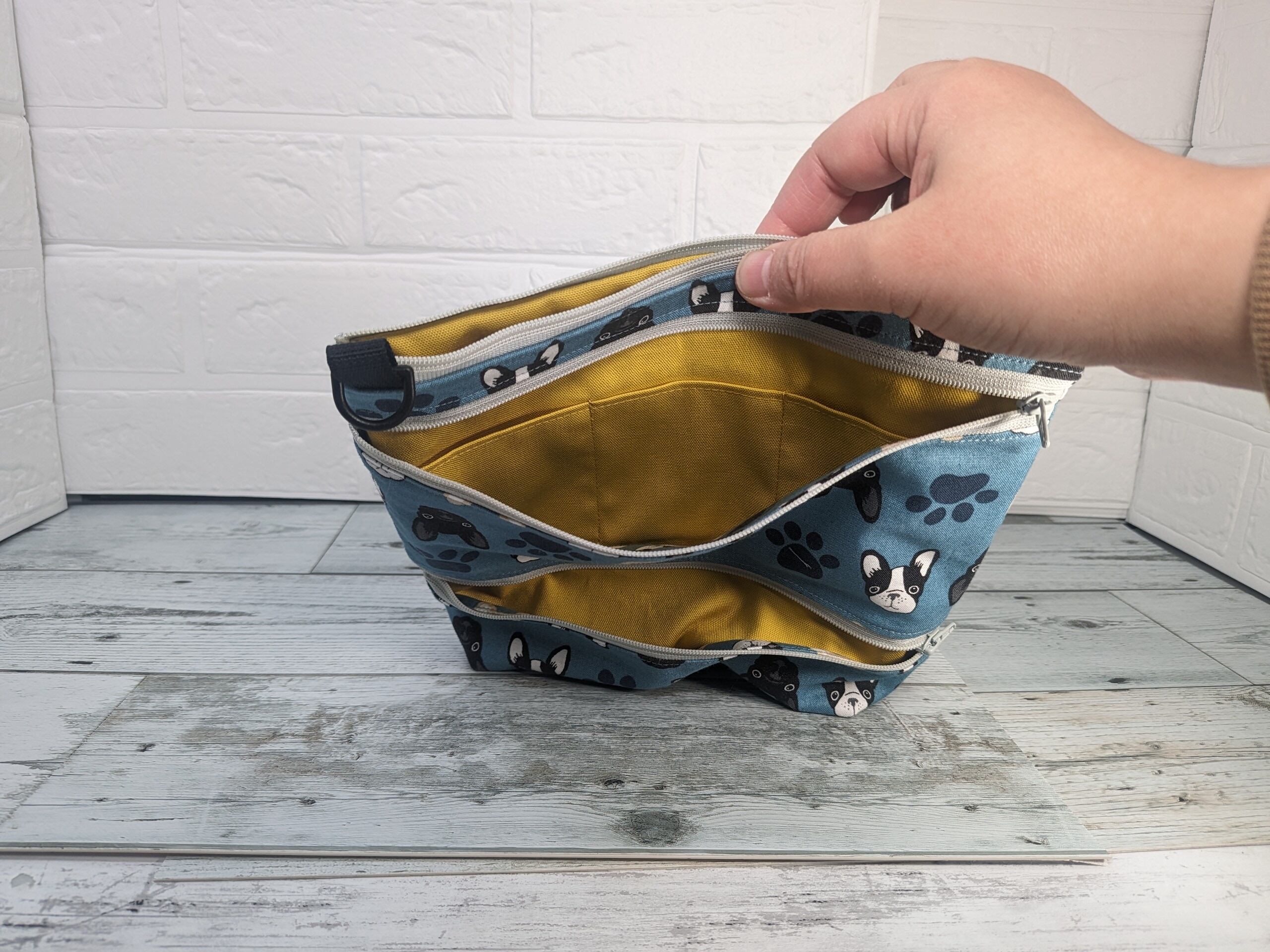 背面のポケットは二つ(フレンチブルドッグは大きいポケット1つにしています。)あり、ハンカチ、ティッシュやスマホなどすぐに取り出せます。